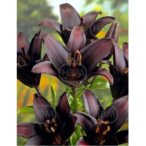 Landinin kukat ovat samettista, viininpunaista kastanjaa, pystysuorassa suunnassa, kiiltävän mustana, halkaisijaltaan 12–15 cm. Seurauksena on, että melkein mustat kukat lisäävät mysteeriä ja romantiikkaa maisemakoostumukseesi. Täydellisesti yhdistetty ryhmään muiden liljavärien kanssa. Hyvä kimppuun, koska sillä ei ole voimakasta tuoksua. Ole ensimmäinen ystäväsi joukossa, joka istuttaa tämän ainutlaatuisen aasialaisen liljan puutarhaan!